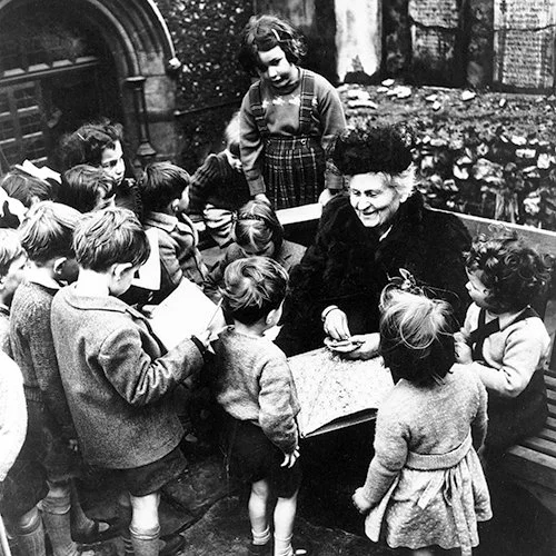 Depuis la fin de la première guerre mondiale, de nombreuses écoles Montessori, mais également des crèches et des bibliothèques Montessori ont vu le jour.